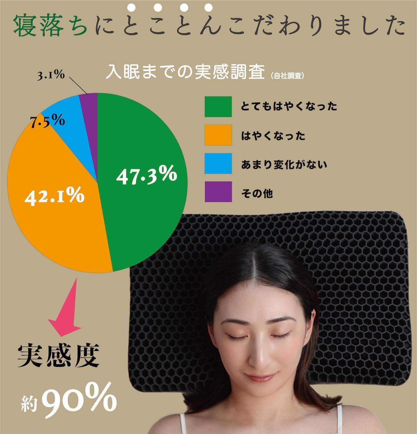 独自のハニカム構造が、頭の熱を逃し、ムレを防いで快適な眠りへと誘います。